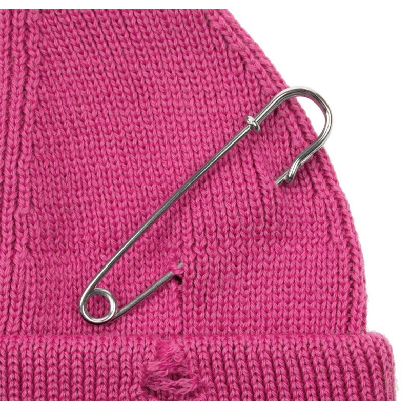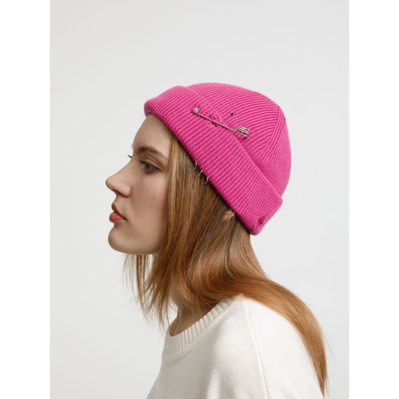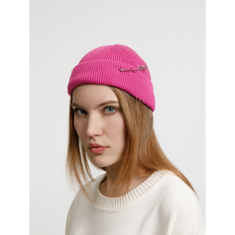 Однослойная шапка бини с рваным отворотом и металлическими аксессуарами для дерзких образов в любом возрасте. Яркий и запоминающийся акцент в стиле гранж.