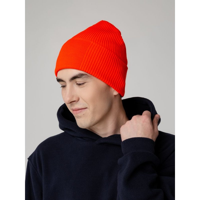 Двухслойная шапка фактурной вязки с отворотом и специальной более гладкой областью под вышивку.
