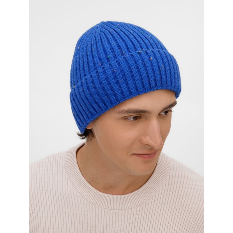 Шапка-бини с отворотом выполнена крупной резинкой из мягкой акриловой пряжи, которая создает дополнительный объем и хорошо сохраняет тепло. Благодаря оригинальному дизайну она позволит создать запоминающийся образ со стильным и лаконичным акцентом.