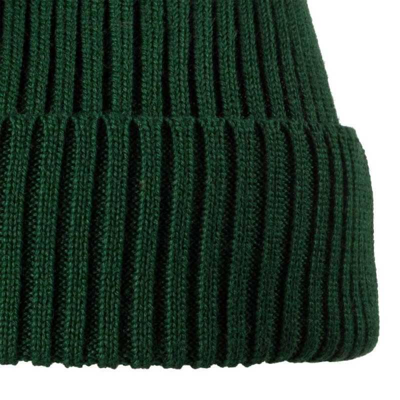 Металлический шильд с названием бренда расположен у заднего шва шапки. Это оставляет место спереди для пришива лейбла или шильдика с логотипом заказчика.