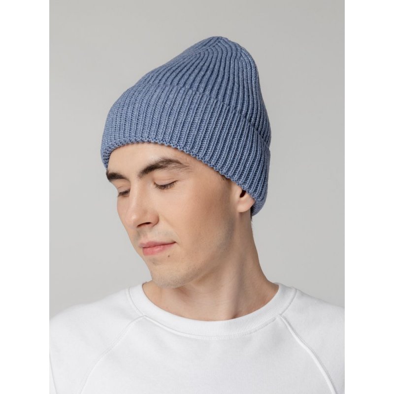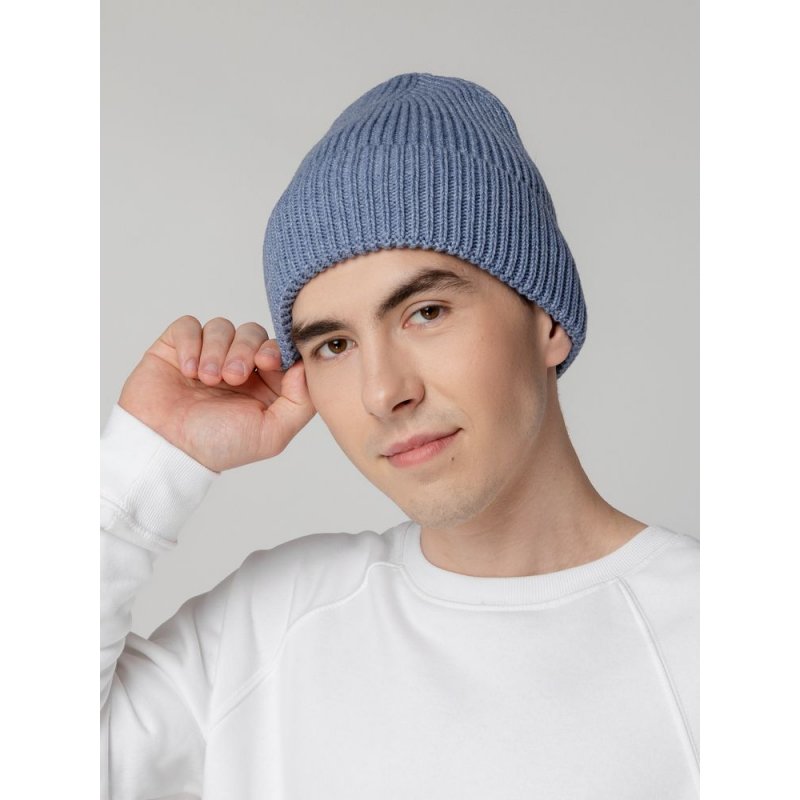 Шапка-бини из полушерстяной пряжи актуальных приглушенных оттенков. Трендовый фасон с удлиненным верхом — для расслабленного повседневного образа.