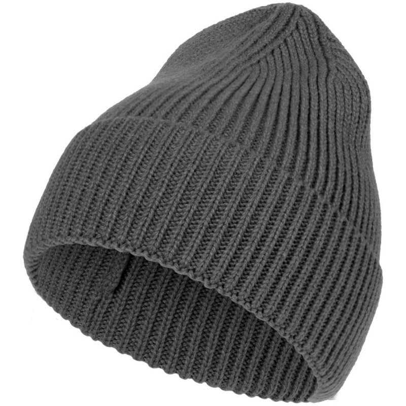 Однослойная шапка рельефной вязки с отворотом.