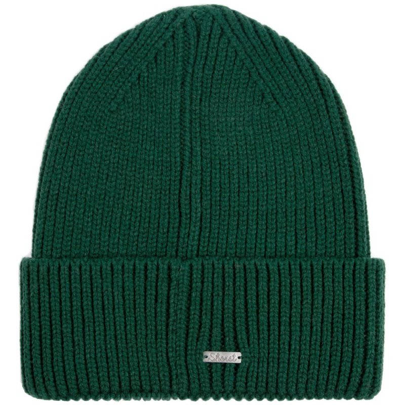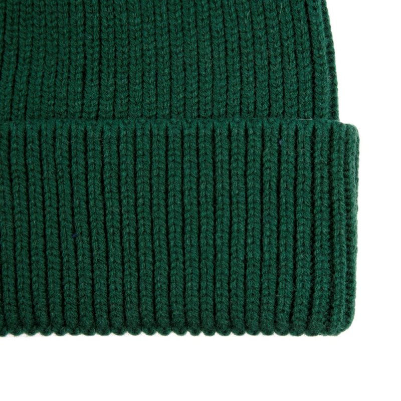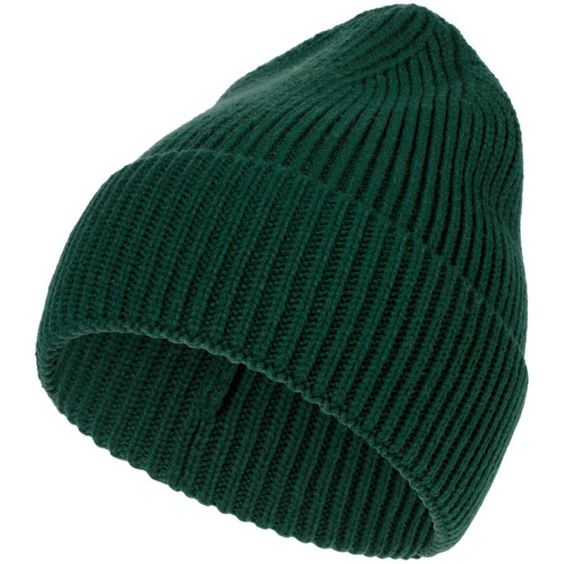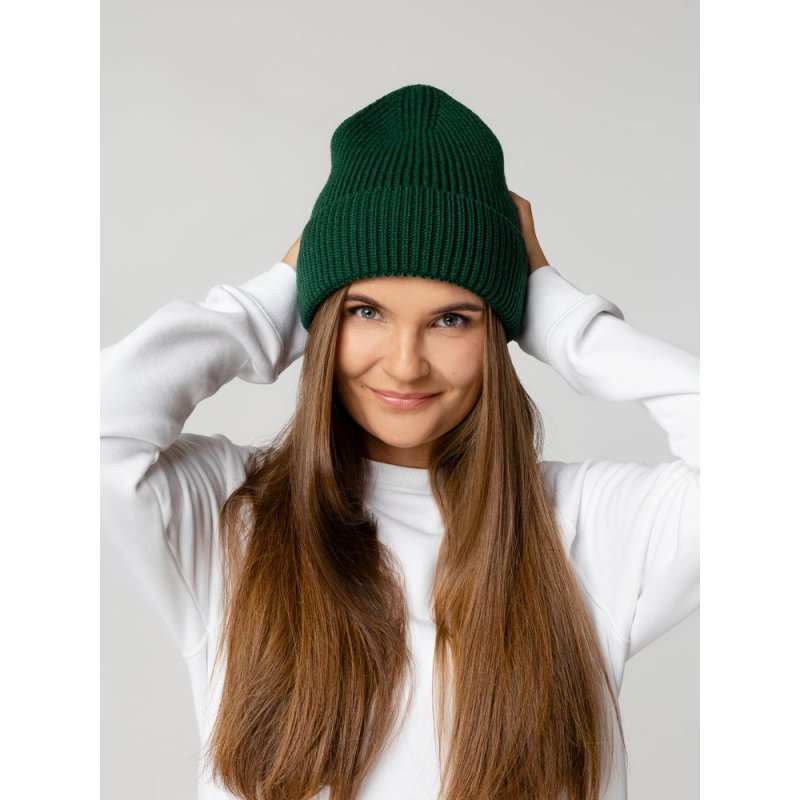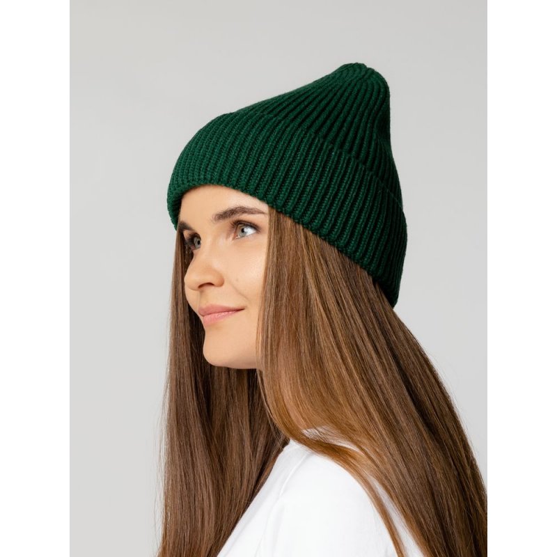 Однослойная шапка рельефной вязки с отворотом.