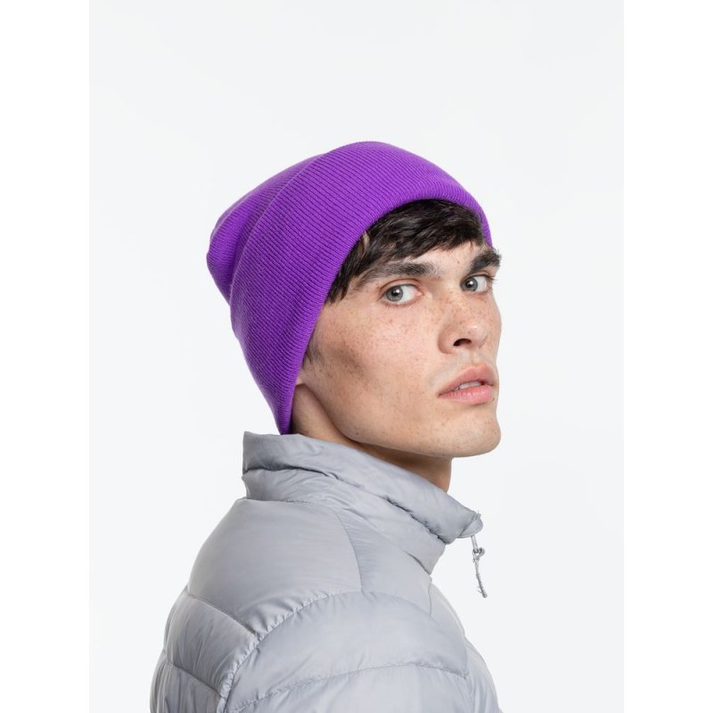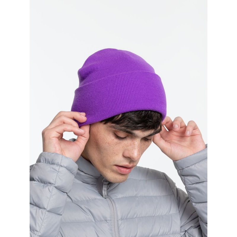 Двухслойная шапка из акриловой пряжи с регулируемым отворотом 7–10 см.