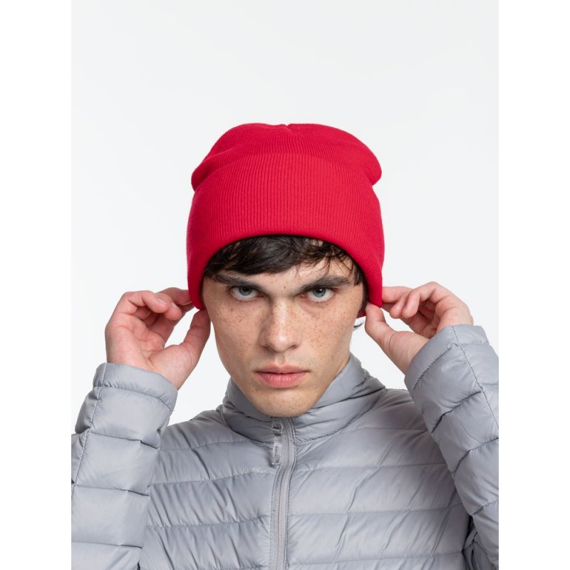 Двухслойная шапка из акриловой пряжи с регулируемым отворотом 7–10 см.