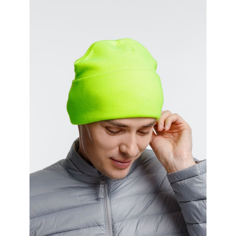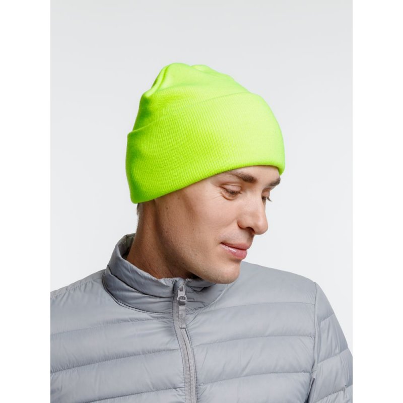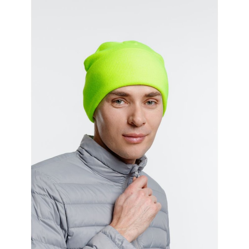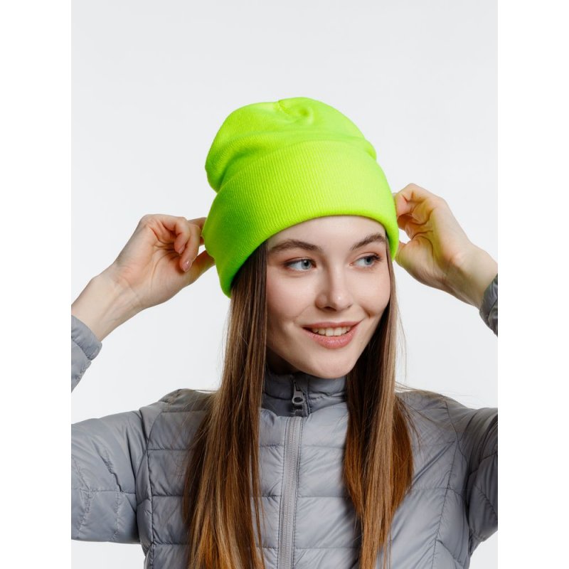 Двухслойная шапка из акриловой пряжи с регулируемым отворотом 7–10 см.