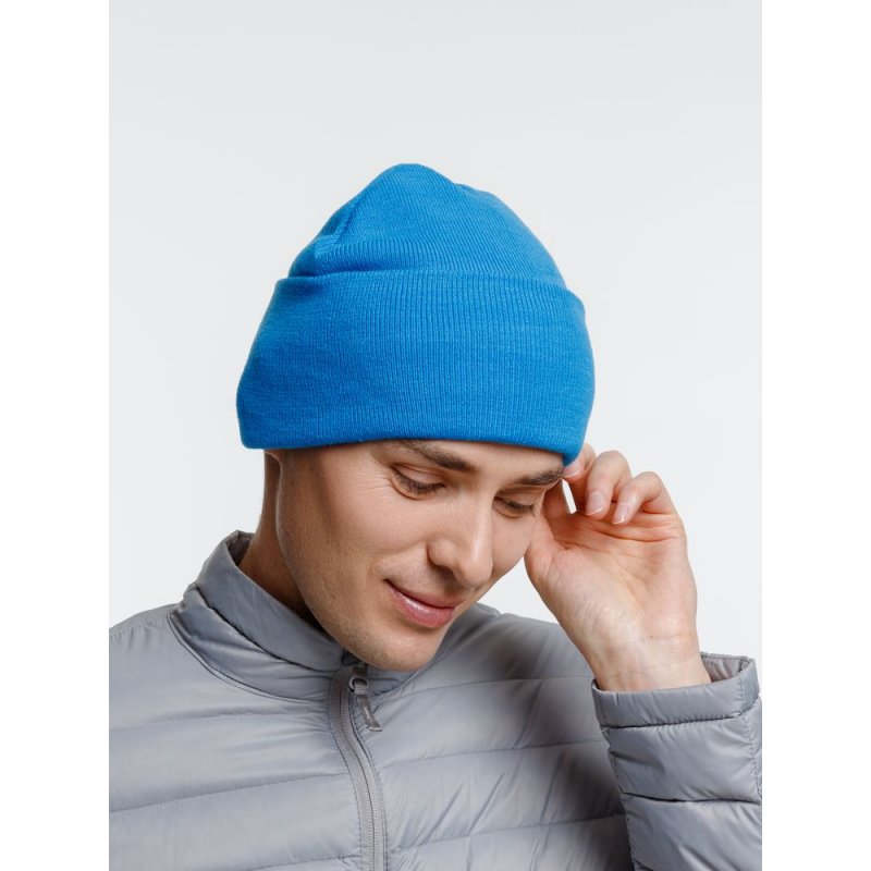 Двухслойная шапка из акриловой пряжи с регулируемым отворотом 7–10 см.
