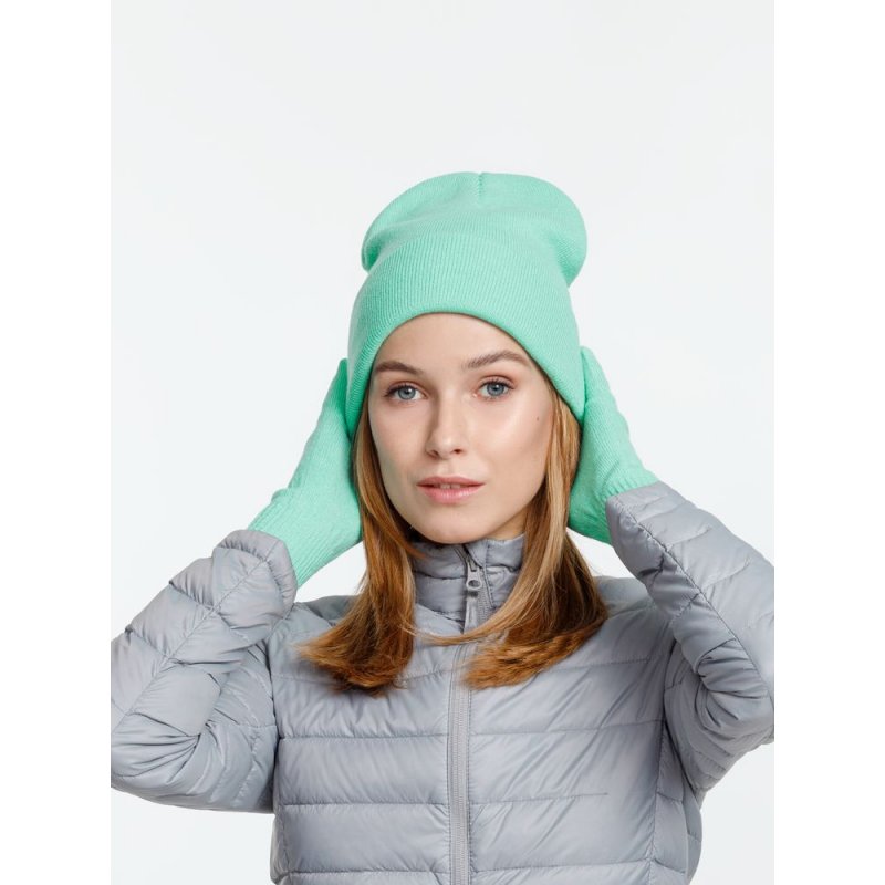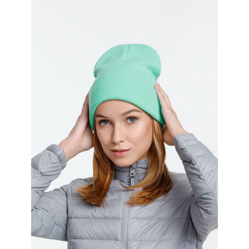 Двухслойная шапка из акриловой пряжи с регулируемым отворотом 7–10 см.