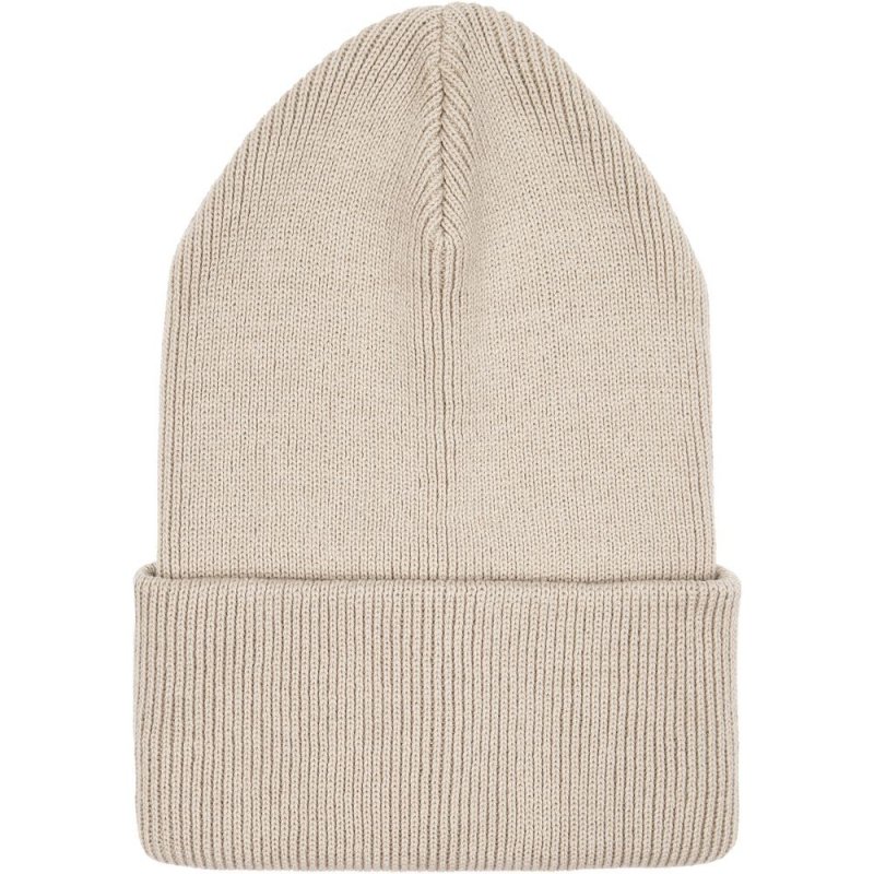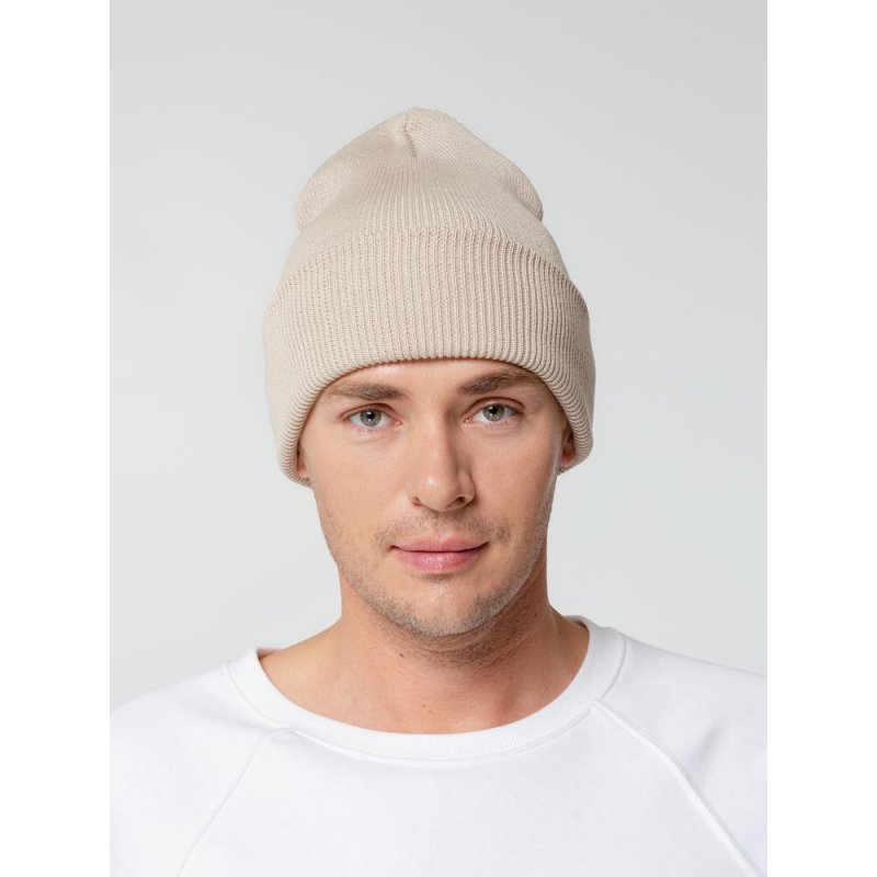 Двухслойная шапка, связанная резинкой, с широким отворотом.