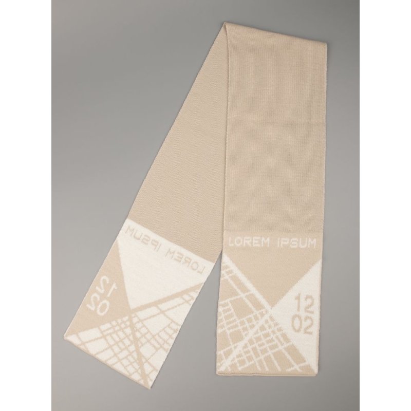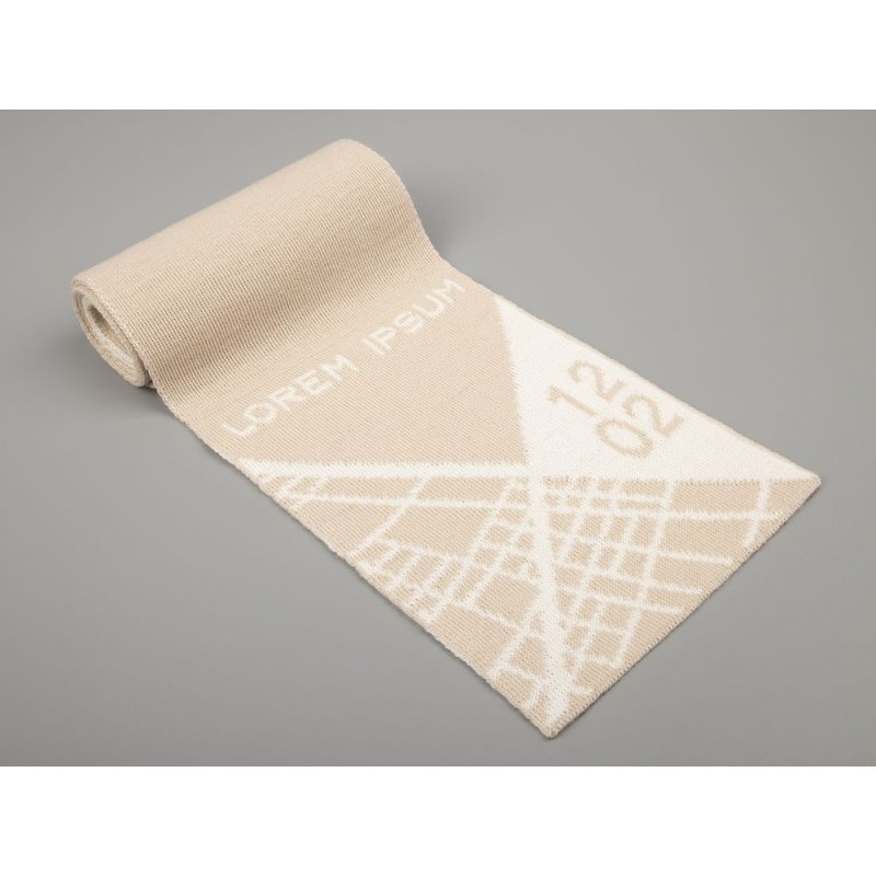 Шарф с вывязанным логотипом и/или индивидуальным рисунком в фирменной цветовой гамме.
