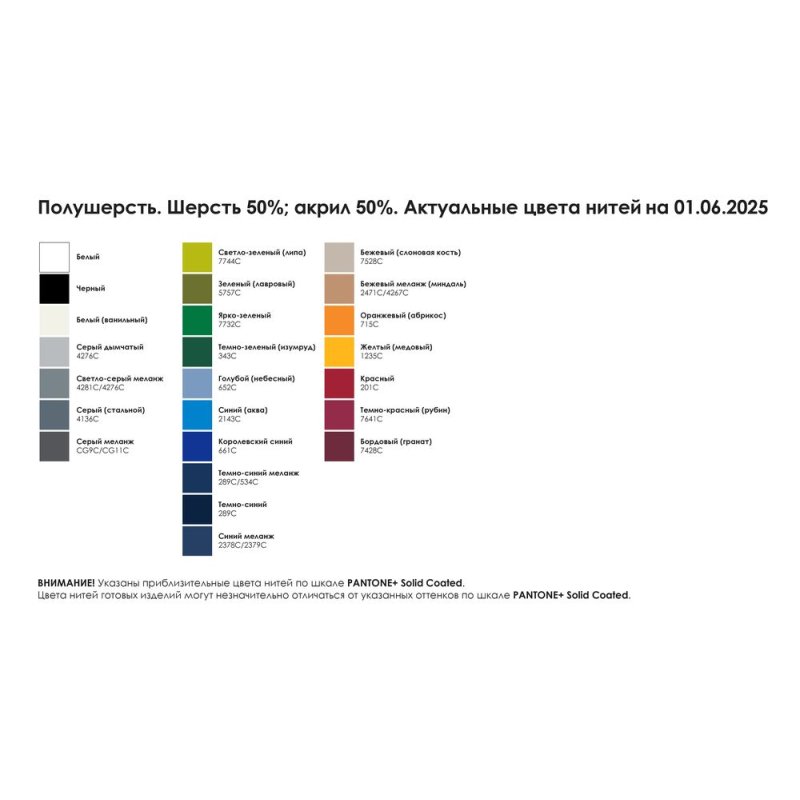 Цвет: выберите цветовое решение по таблице «Актуальные цвета нитей» (на фото).