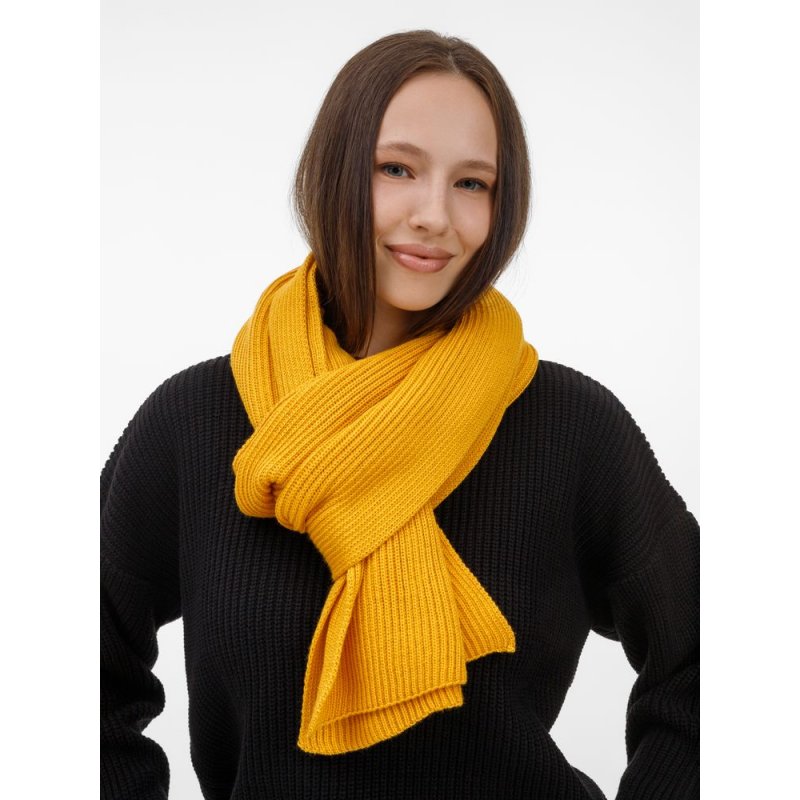 Широкий шарф из мягкой полушерстяной пряжи с выразительной фактурной вязкой создает современный запоминающийся образ.