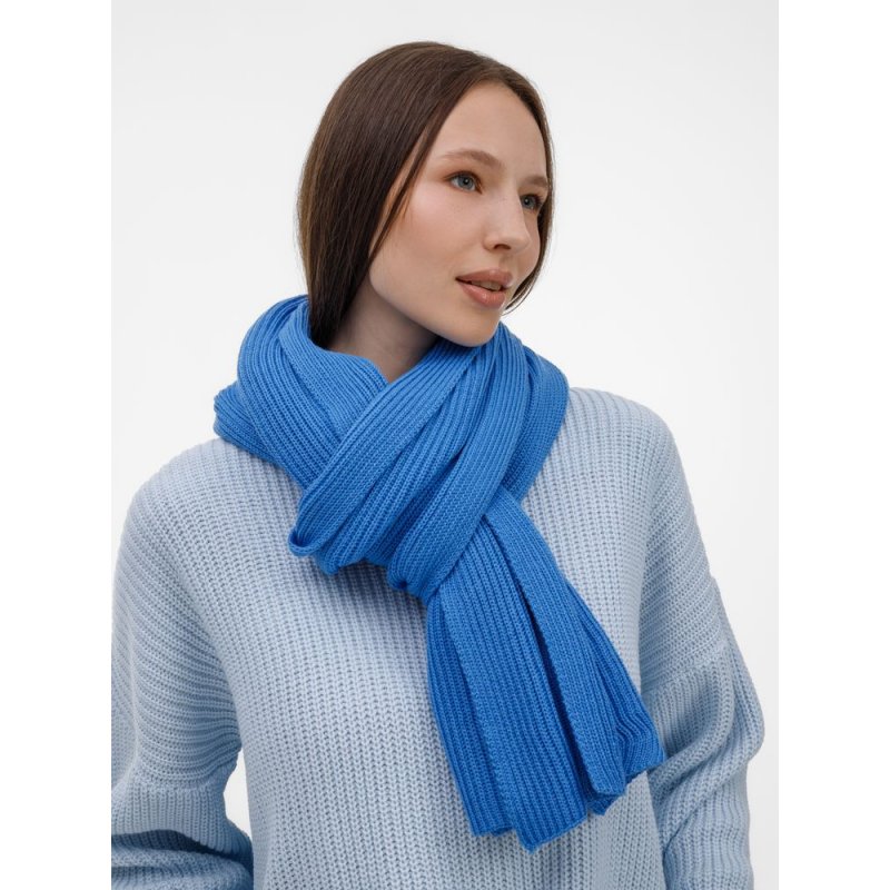 Широкий шарф из мягкой полушерстяной пряжи с выразительной фактурной вязкой создает современный запоминающийся образ.