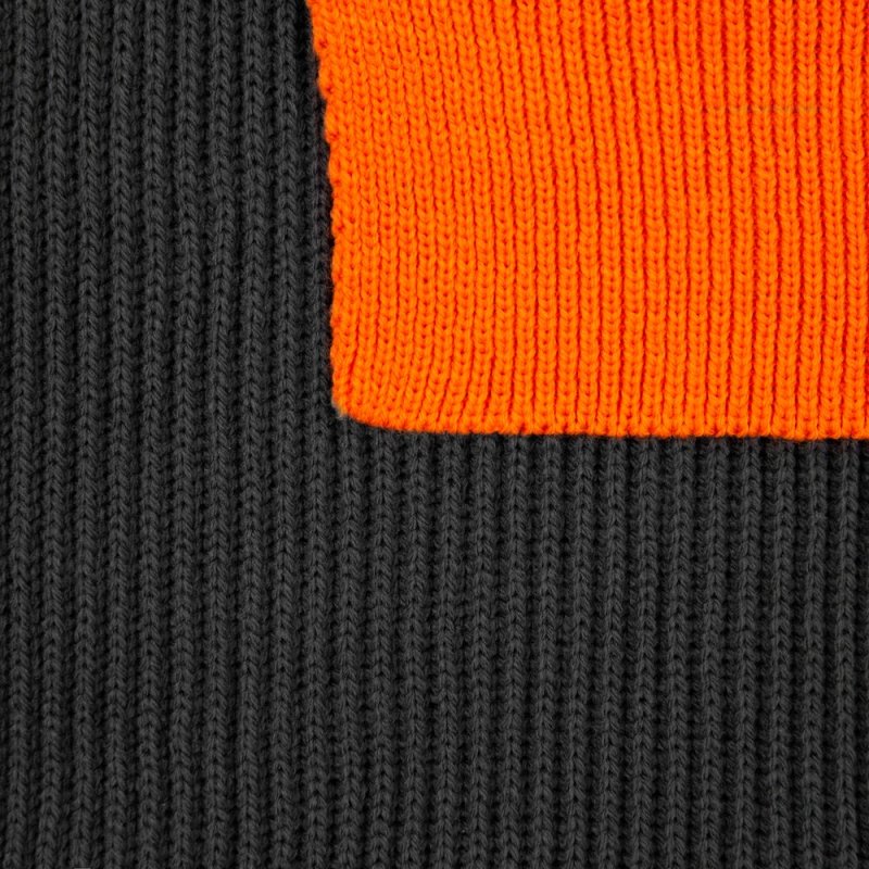Двухслойный шарф фактурной вязки с контрастной отделкой.