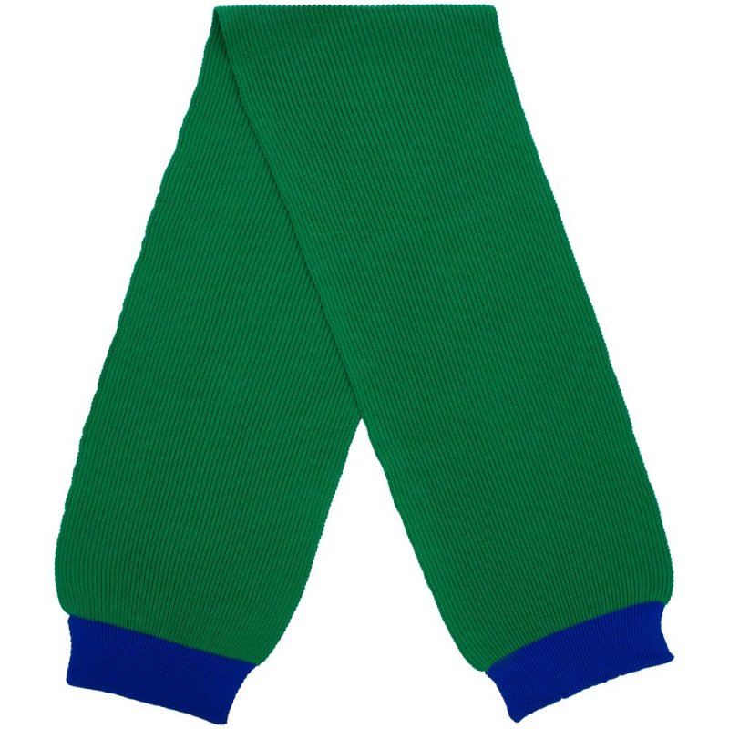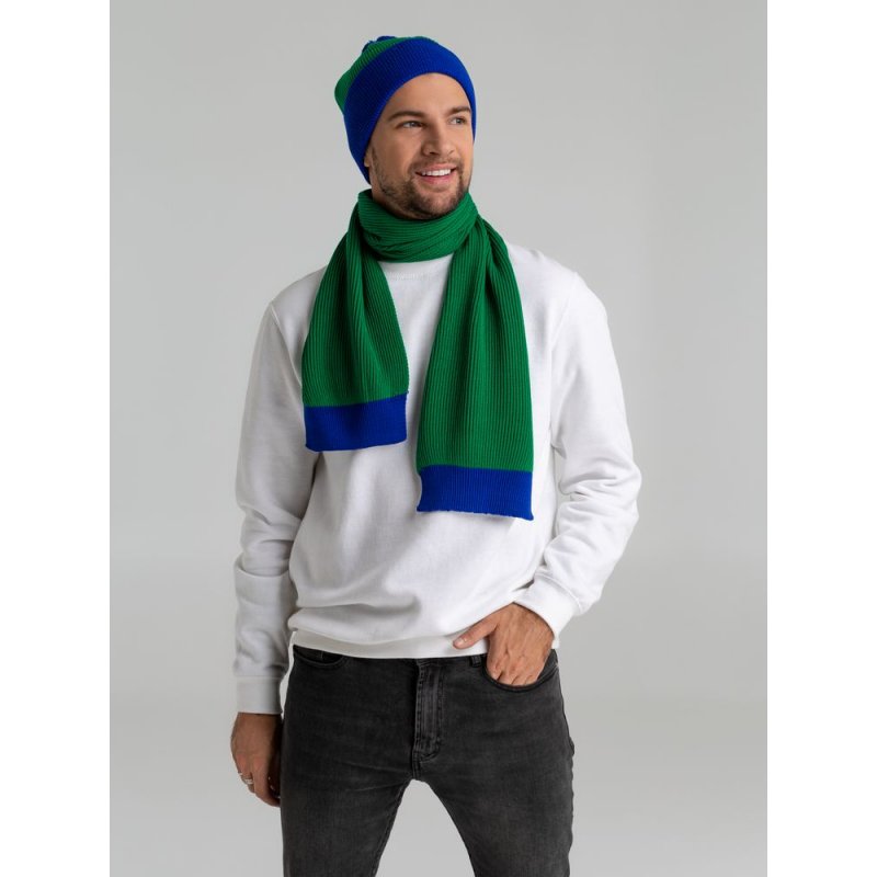 Двухслойный шарф фактурной вязки с контрастной отделкой.