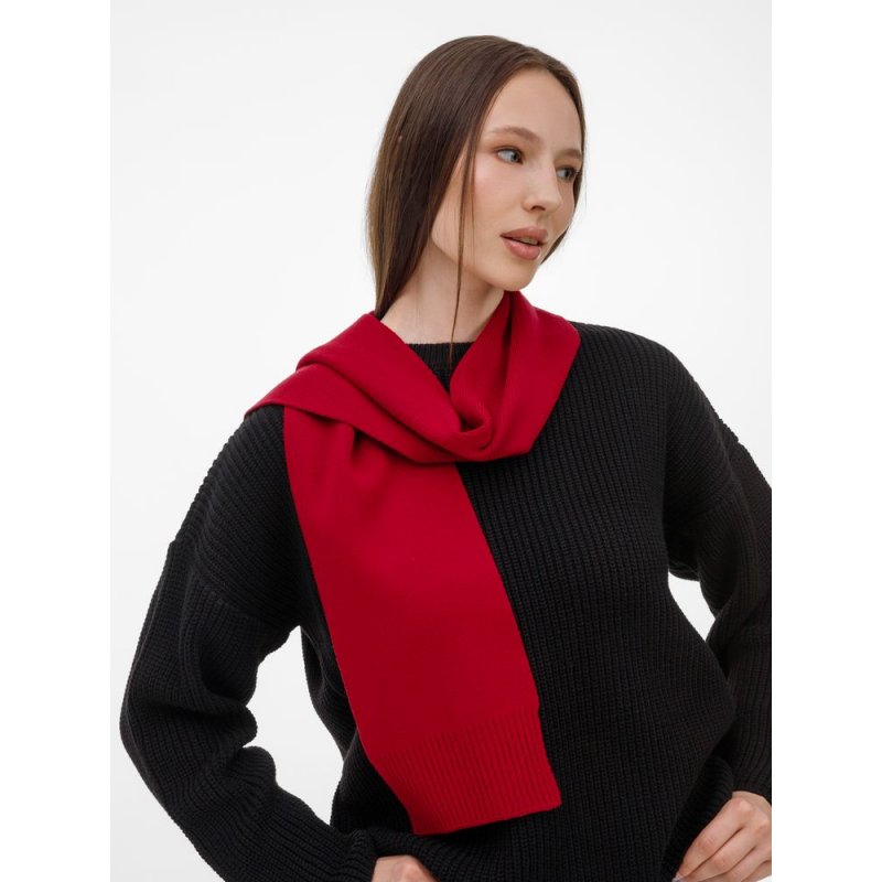 Классический однослойный шарф гладкой вязки. Края, связанные резинкой, придают изделию завершенный и аккуратный вид.