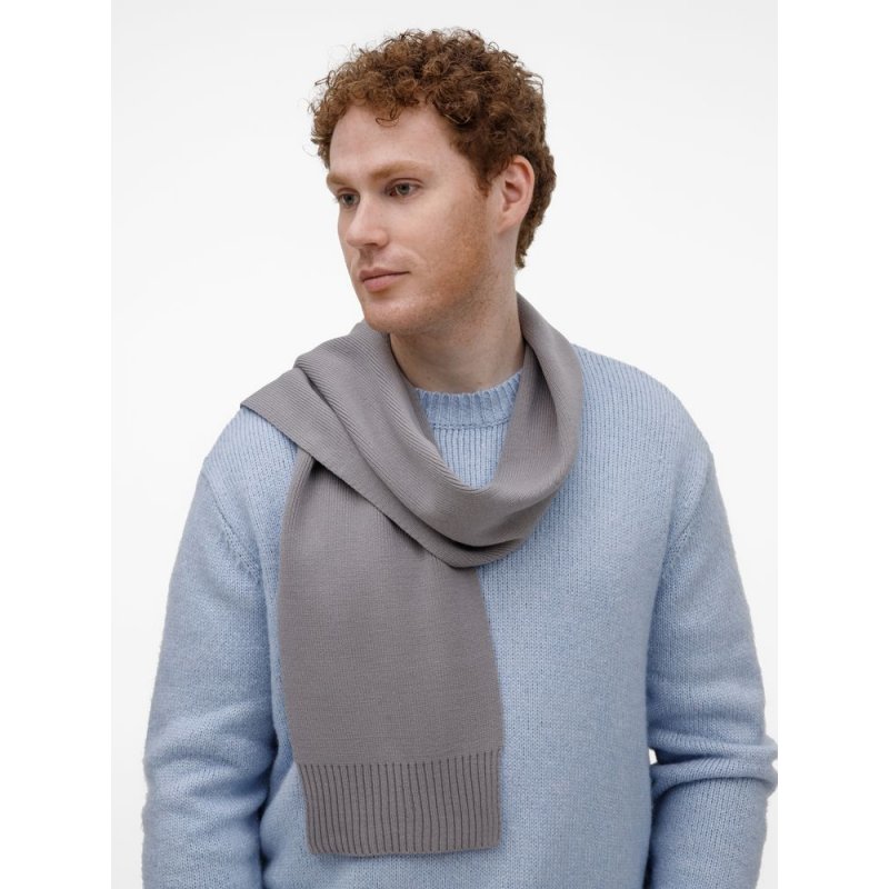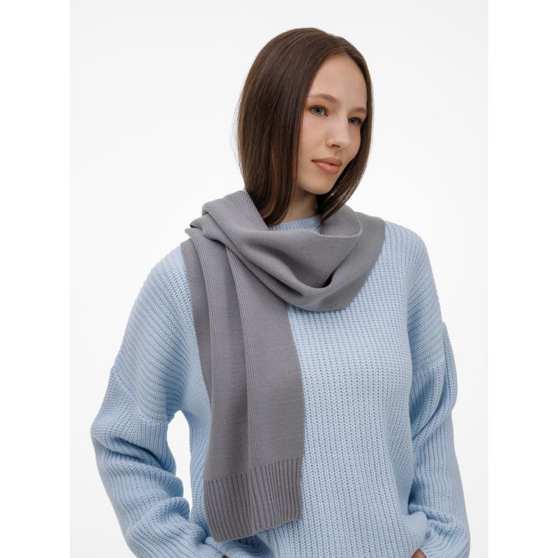 Классический однослойный шарф гладкой вязки. Края, связанные резинкой, придают изделию завершенный и аккуратный вид.