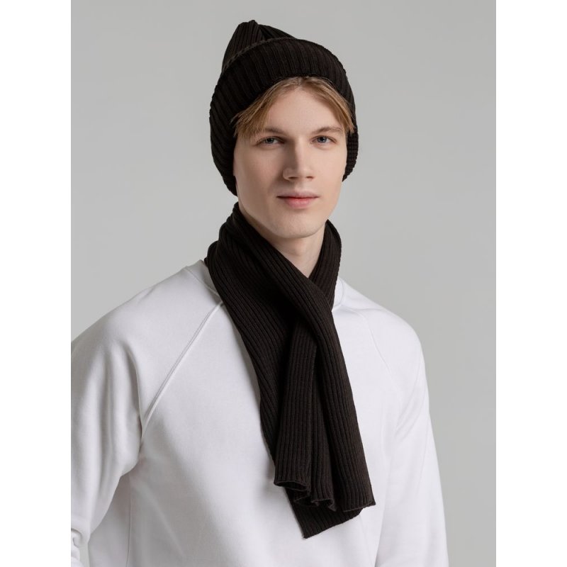 Однослойный шарф фактурной вязки с отверстием для быстрого и удобного завязывания.