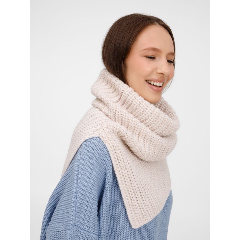 Мягкая пряжа с выразительной фактурной вязкой создает объем без лишней тяжести, даря тепло в прохладную погоду. Разрез от середины снуда расширяет возможности стилизации: его можно драпировать асимметрично или создавать оригинальные многослойные образы. Сдержанный дизайн и универсальная цветовая палитра делают его идеальным дополнением к пальто или куртке.