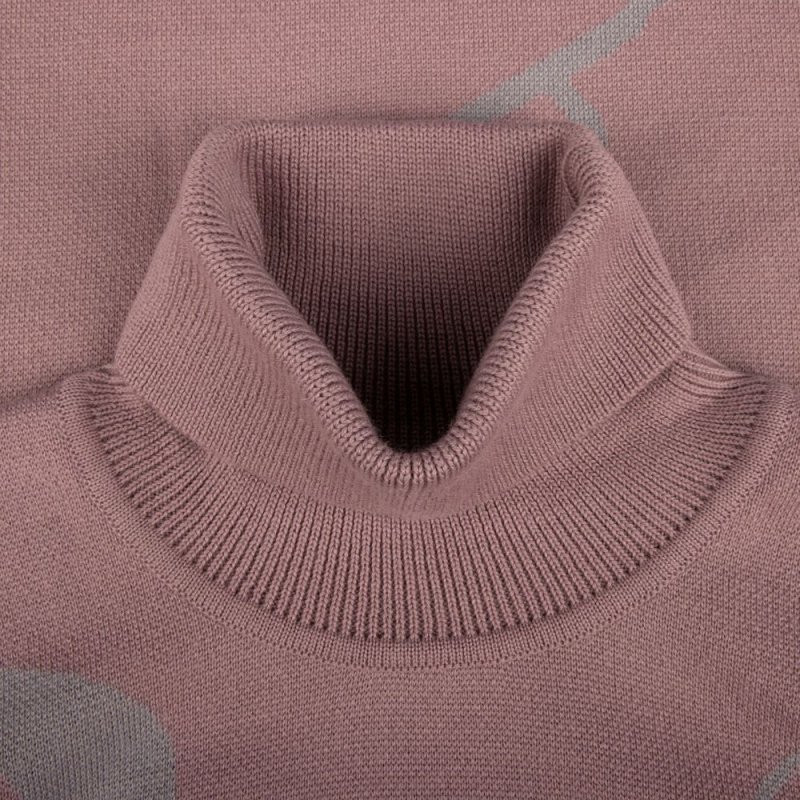 Модель: свитер жаккардовой вязки, плотный и теплый, 2–3 цвета нитей, гладкая поверхность.