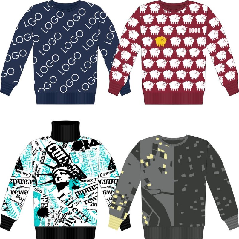 – на однотонных пространствах можно «разделить» полотно (кажется, что свитер двуслойный), поэтому рекомендуется не оставлять больших однотонных площадей.