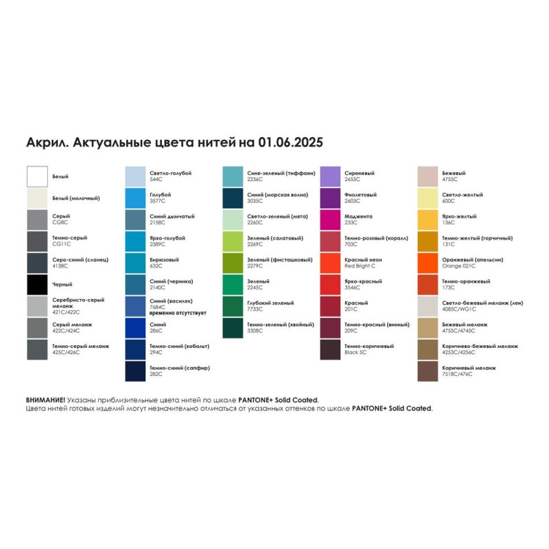 Цвет пальца: один цвет, выберите цветовое решение по таблице «Актуальные цвета нитей» (на фото).