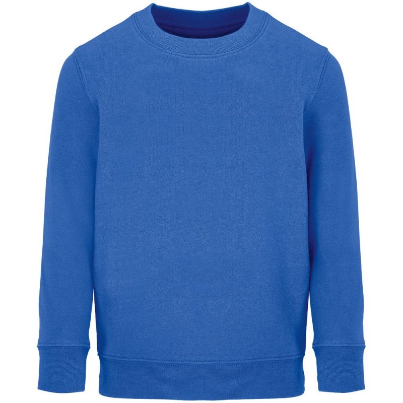 Детский свитшот из хлопка и переработанного полиэстера с круглым вырезом и втачным рукавом.