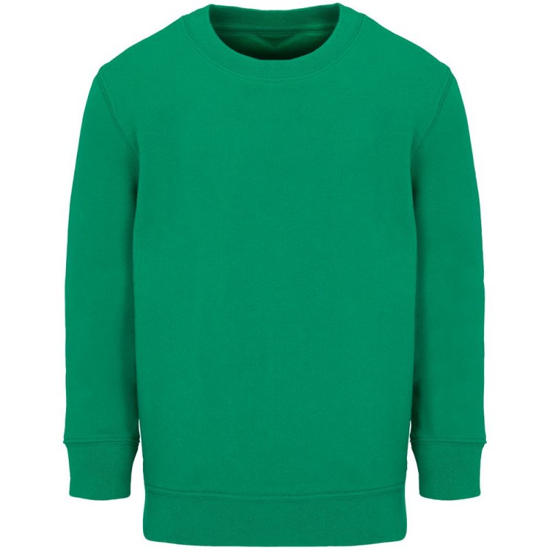 Детский свитшот из хлопка и переработанного полиэстера с круглым вырезом и втачным рукавом.
