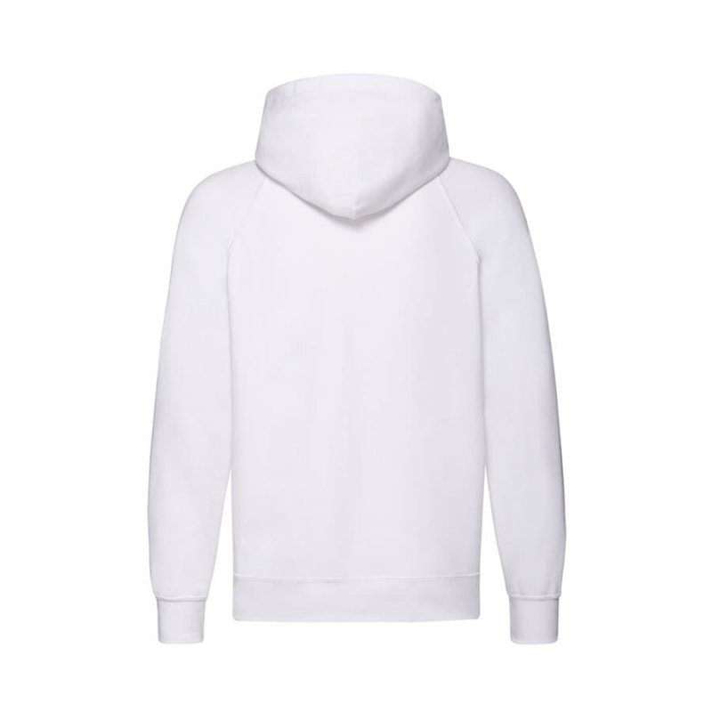 Футровая ткань без начеса. Капюшон с плоским вытяжным шнуром в тон изделия. Скрытая пластиковая молния для нестандартной печати. Два передних кармана. Рукава-реглан.