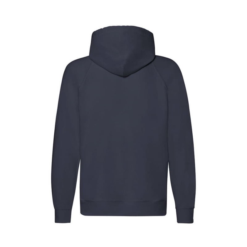Футровая ткань без начеса. Капюшон с плоским вытяжным шнуром в тон изделия. Скрытая пластиковая молния для нестандартной печати. Два передних кармана. Рукава-реглан.