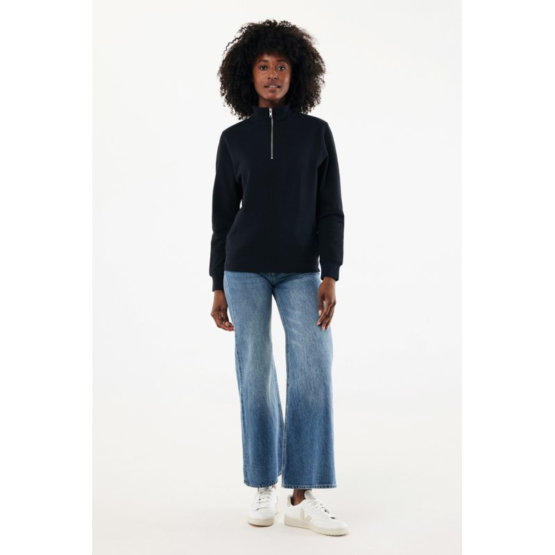 Свитшот на молнии выполнен из 100% хлопка, который на 30% состоит из переработанного и на 70% из органического. Воротник-стойка, втачные длинные рукава и резинка по манжетам и низу. Внутренняя сторона выполнена из френч-терри.