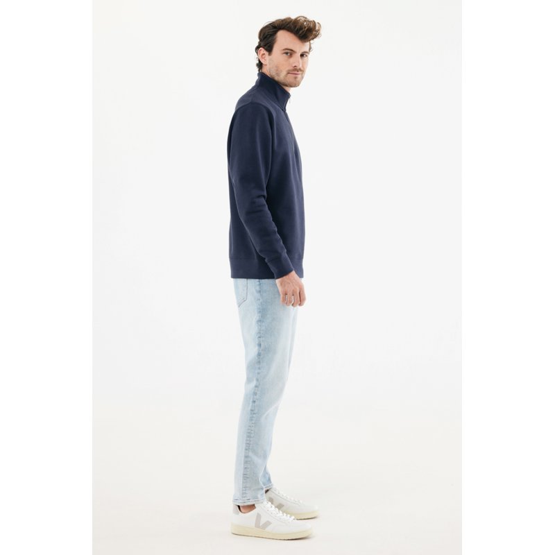 Свитшот на молнии выполнен из 100% хлопка, который на 30% состоит из переработанного и на 70% из органического. Воротник-стойка, втачные длинные рукава и резинка по манжетам и низу. Внутренняя сторона выполнена из френч-терри.