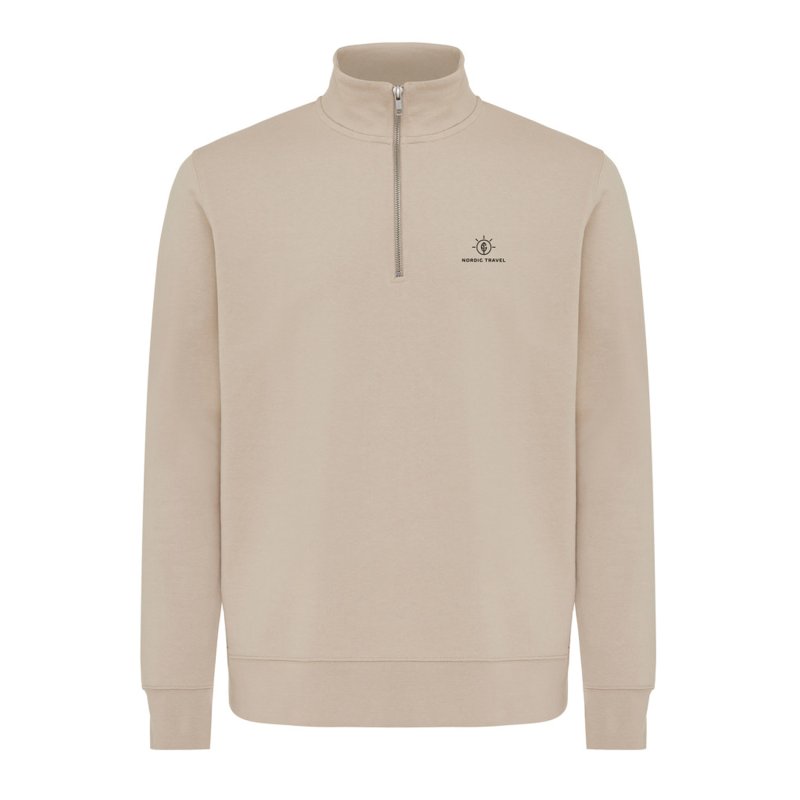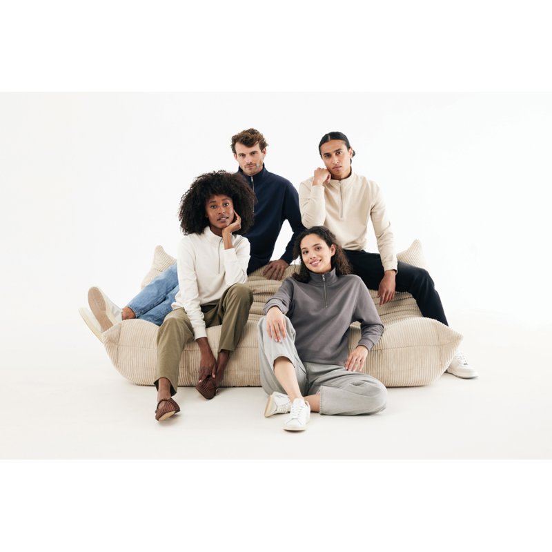 Свитшот на молнии выполнен из 100% хлопка, который на 30% состоит из переработанного и на 70% из органического. Воротник-стойка, втачные длинные рукава и резинка по манжетам и низу. Внутренняя сторона выполнена из френч-терри.