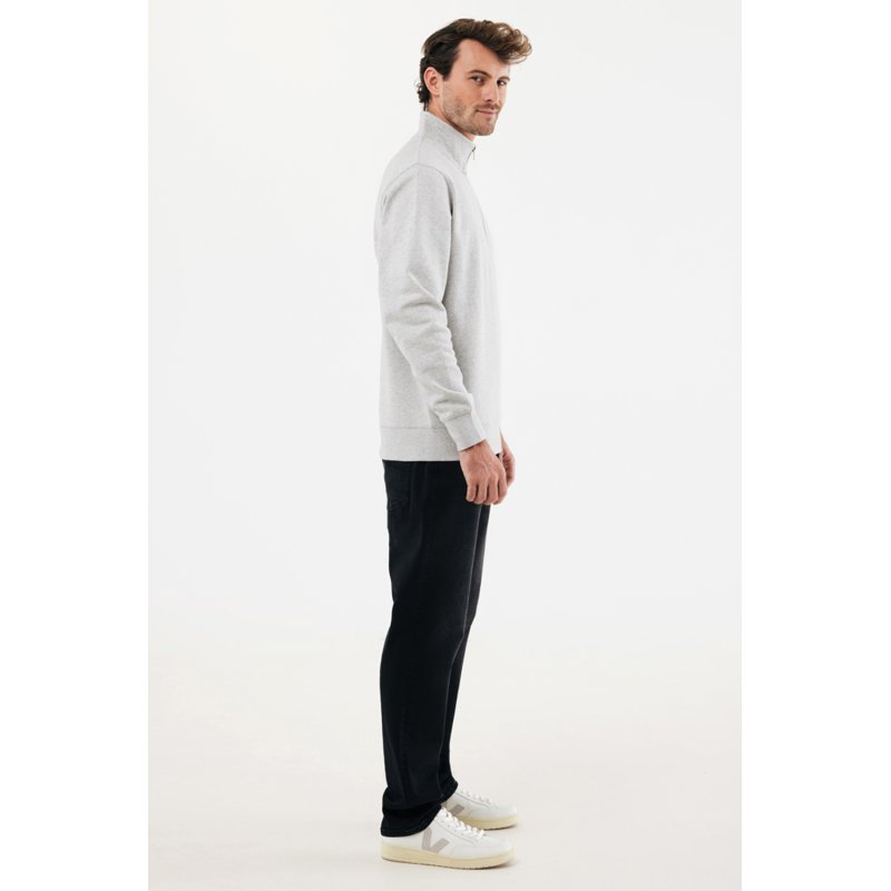 Свитшот на молнии выполнен из 100% хлопка, который на 30% состоит из переработанного и на 70% из органического. Воротник-стойка, втачные длинные рукава и резинка по манжетам и низу. Внутренняя сторона выполнена из френч-терри.