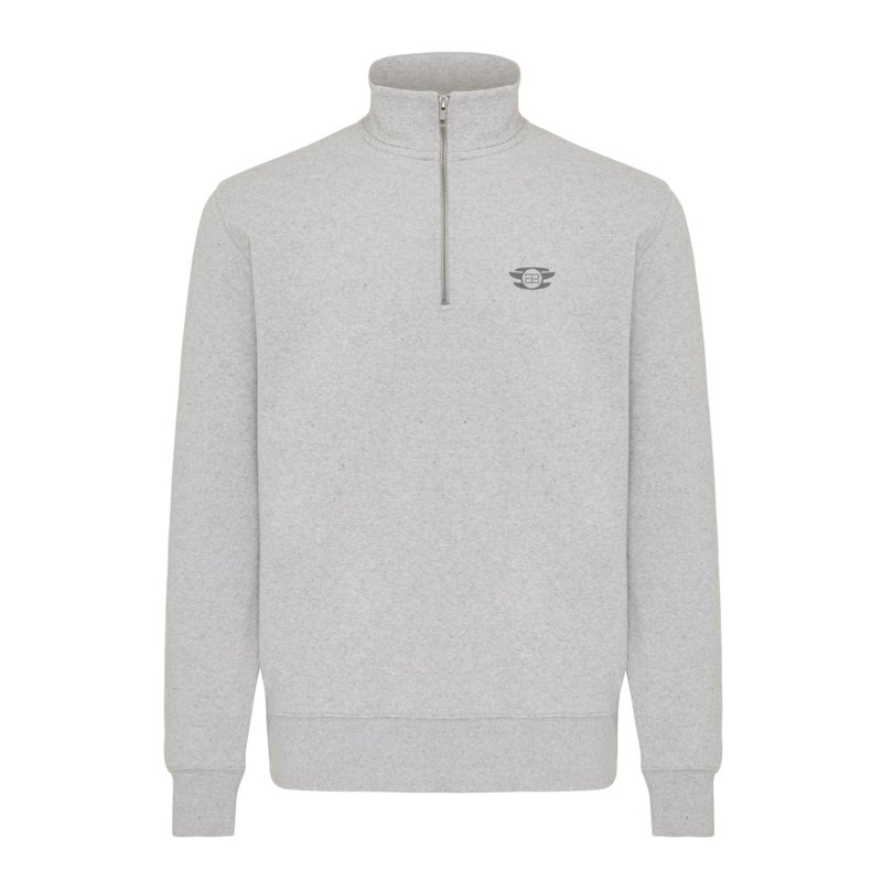 Свитшот на молнии выполнен из 100% хлопка, который на 30% состоит из переработанного и на 70% из органического. Воротник-стойка, втачные длинные рукава и резинка по манжетам и низу. Внутренняя сторона выполнена из френч-терри.