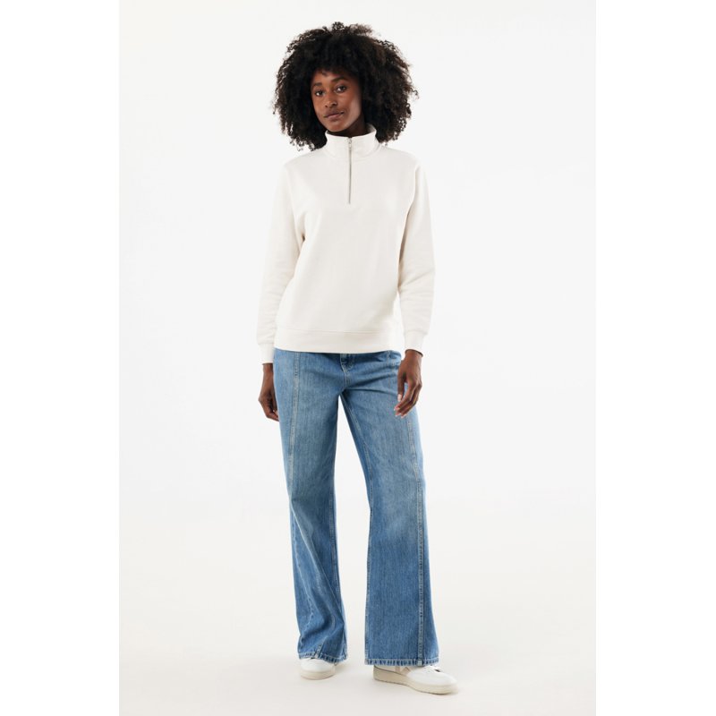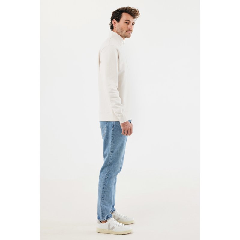 Свитшот на молнии выполнен из 100% хлопка, который на 30% состоит из переработанного и на 70% из органического. Воротник-стойка, втачные длинные рукава и резинка по манжетам и низу. Внутренняя сторона выполнена из френч-терри.