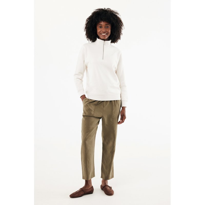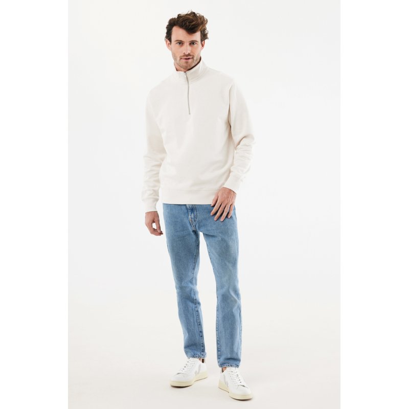 Свитшот на молнии выполнен из 100% хлопка, который на 30% состоит из переработанного и на 70% из органического. Воротник-стойка, втачные длинные рукава и резинка по манжетам и низу. Внутренняя сторона выполнена из френч-терри.