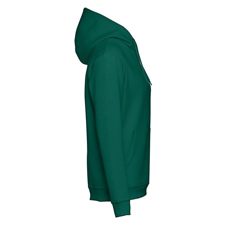 Толстовка унисекс с капюшоном. Внутренняя сторона с начесом. Манжеты и низ изделия обработаны рибом 1х1. Карман-кенгуру. Капюшон с отверстиями и кулиской в тон изделия.