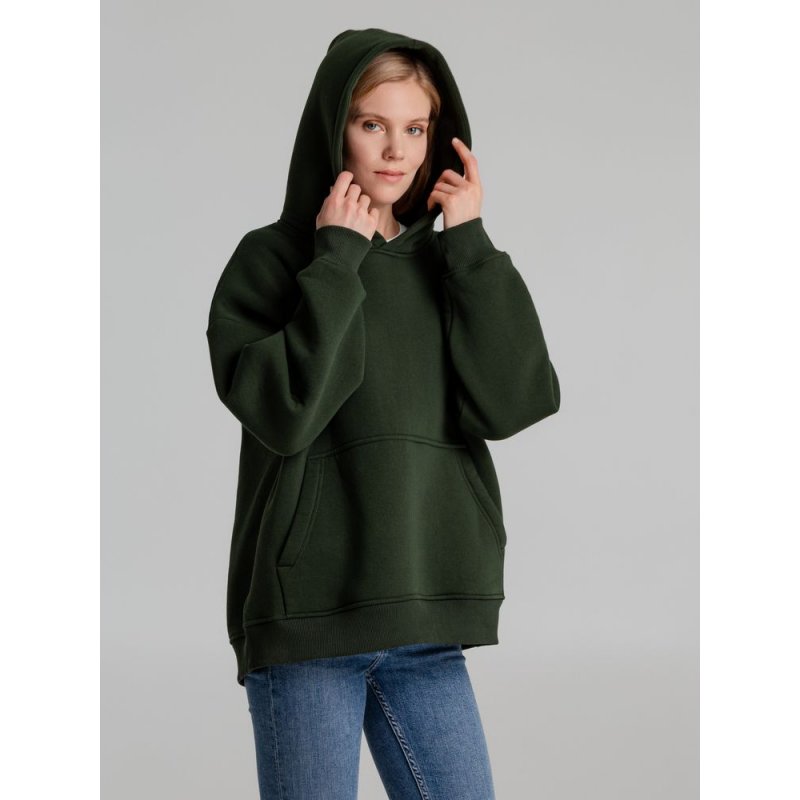 Худи унисекс со спущенным плечом и карманом-кенгуру.