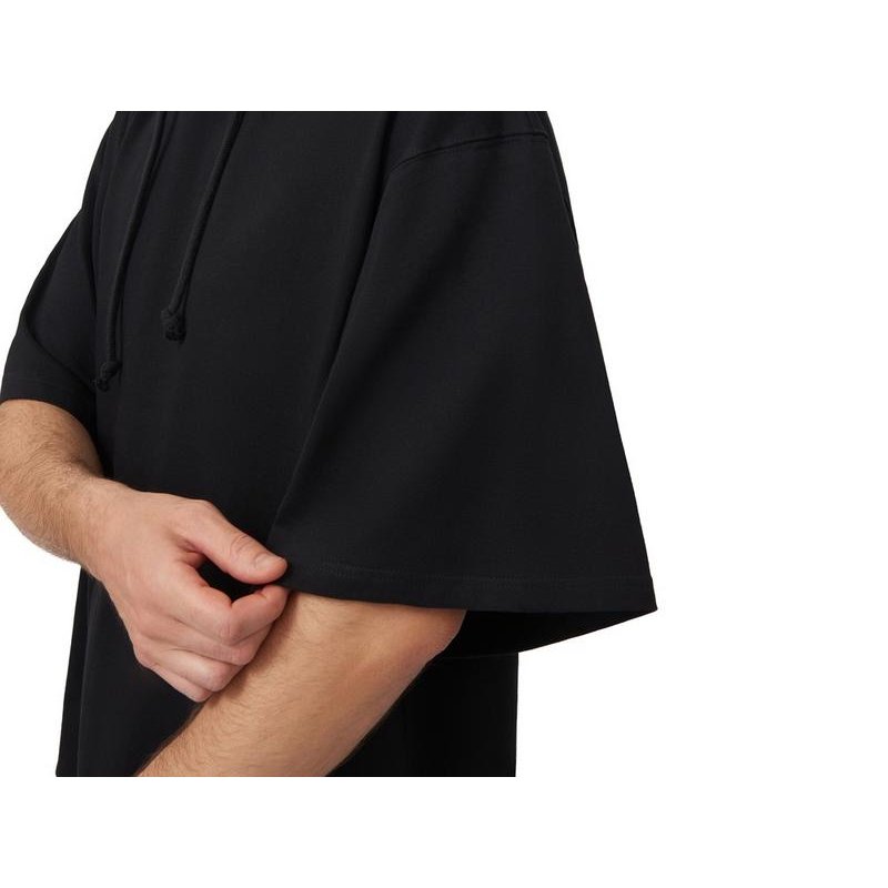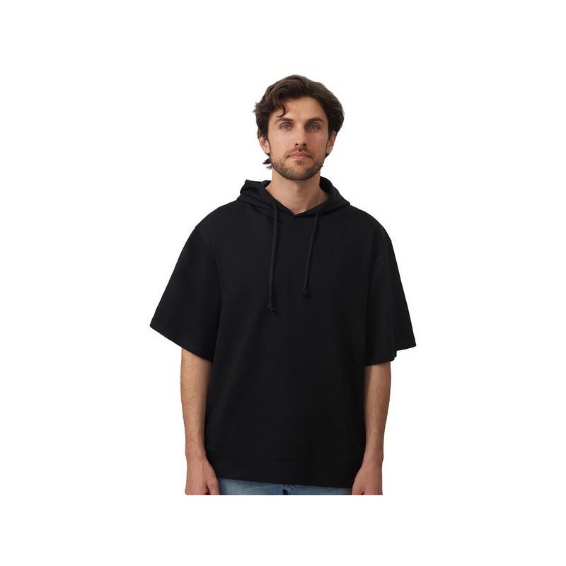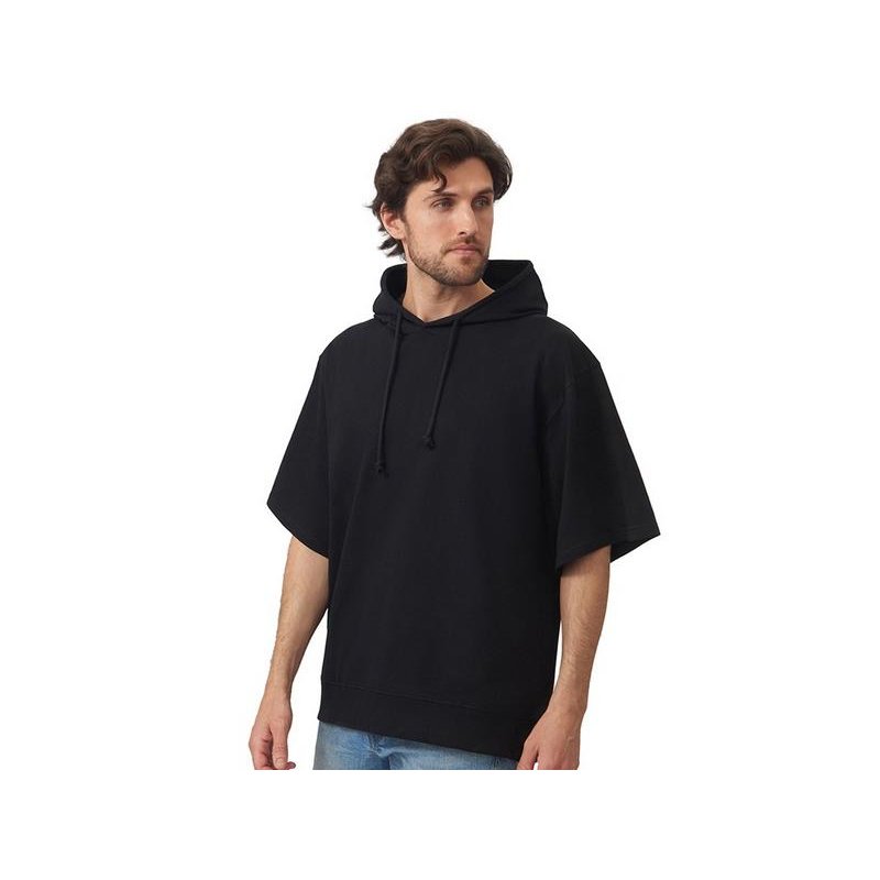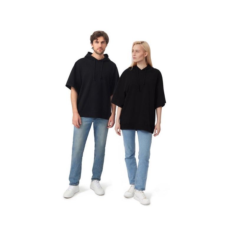Худи с коротким рукавом выполнено из хлопкового френч терри с петельками на изнаночной стороне. Подкладка капюшона выполнена из основного полотна для объемной посадки. Модель комфортной и актуальной посадки оверсайз отлично подходит для обычной жизни и в качестве промо мерча.