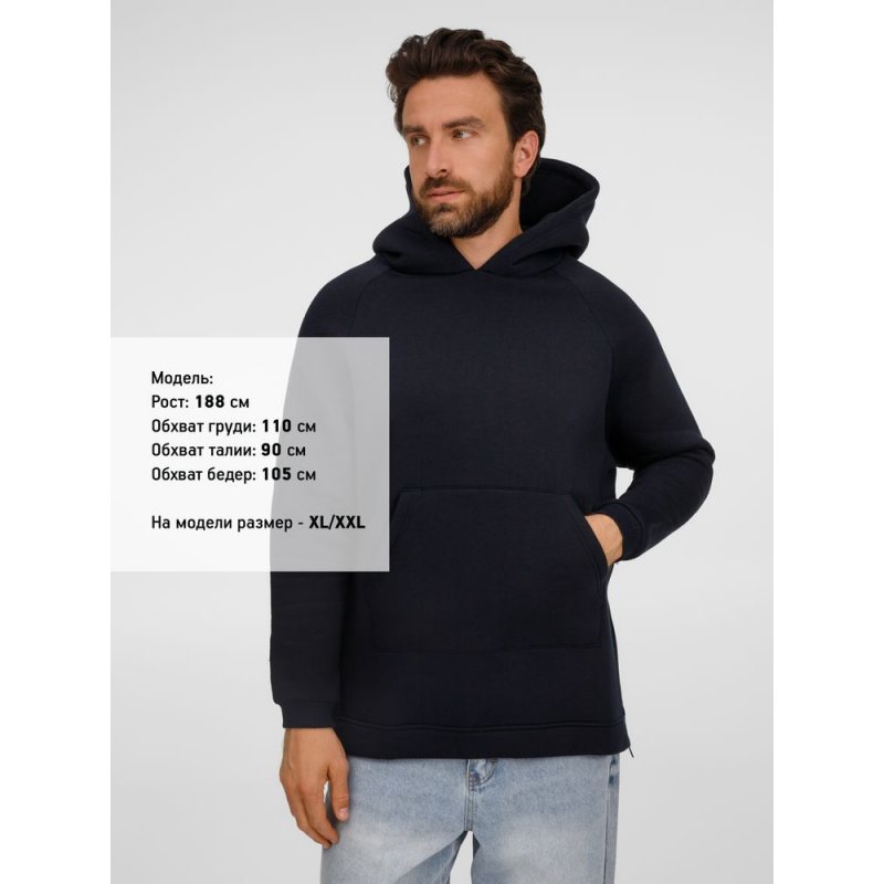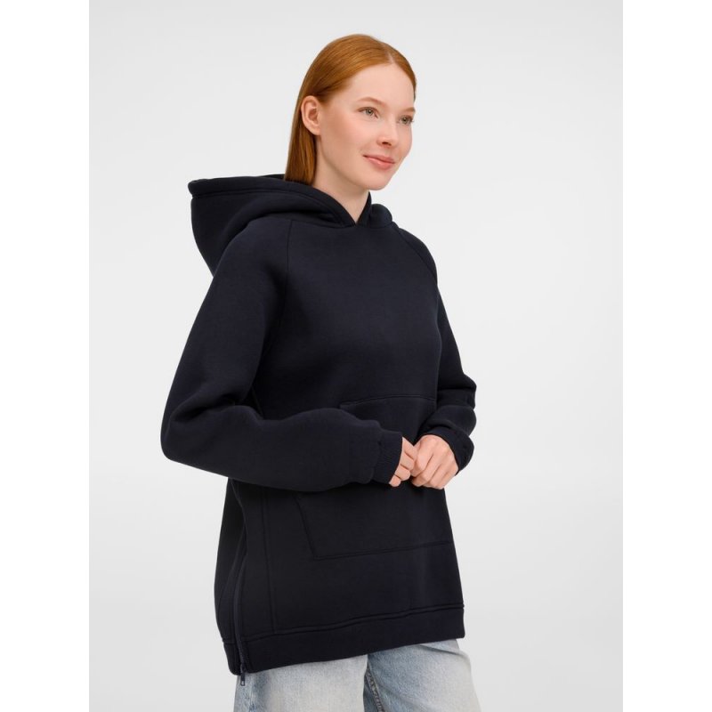 Худи унисекс удлиненного силуэта с молниями в боковых швах.