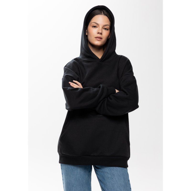Толстовка свободного силуэта с капюшоном комфортной глубины, спущенной линией плеча и глубоким карманом-кенгуру. Манжет и низ изделия оформлены широкой эластичной резинкой в тон основному цвету.