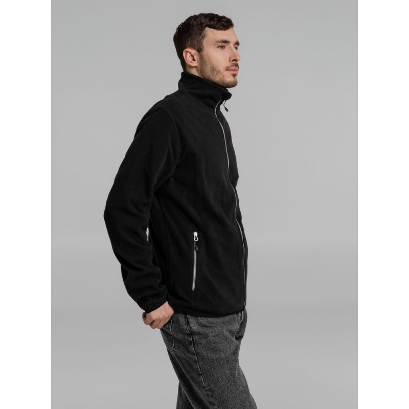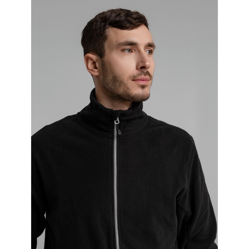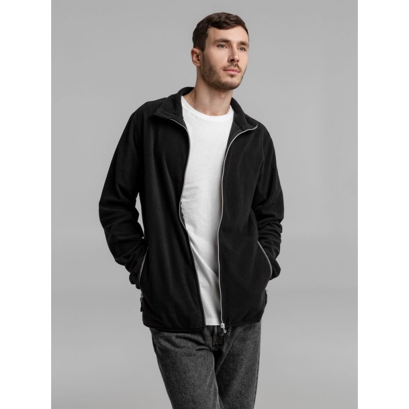 Толстовка из микрофлиса. Передние карманы на молнии, манжеты и низ куртки на тонкой резинке, застежка-молния контрастного цвета.