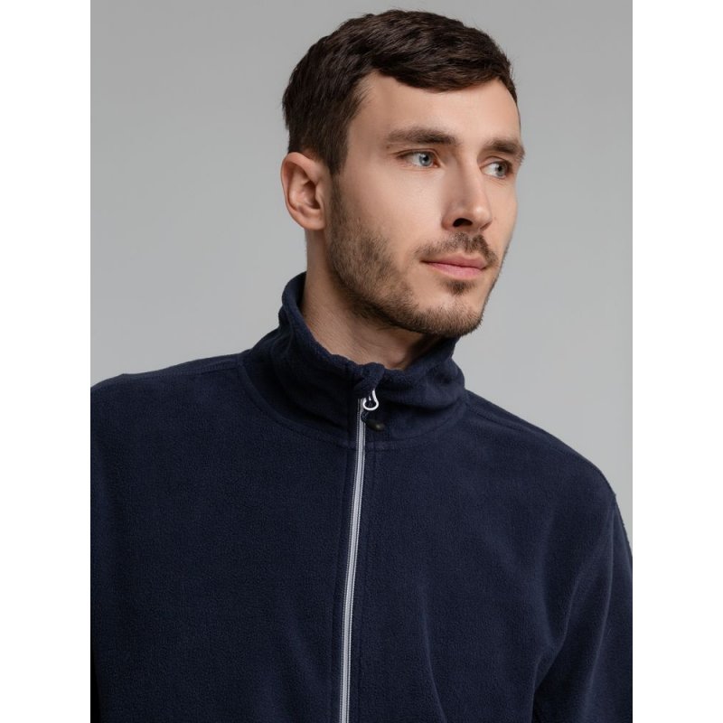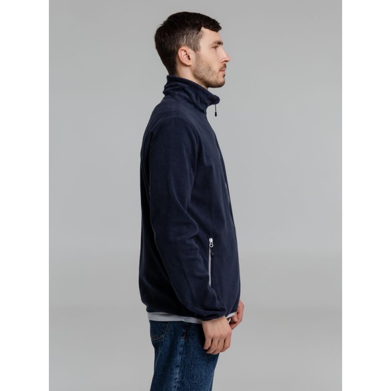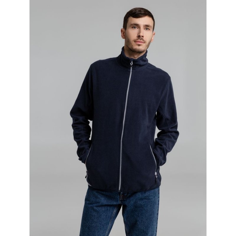 Толстовка из микрофлиса. Передние карманы на молнии, манжеты и низ куртки на тонкой резинке, застежка-молния контрастного цвета.