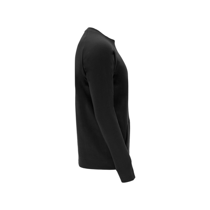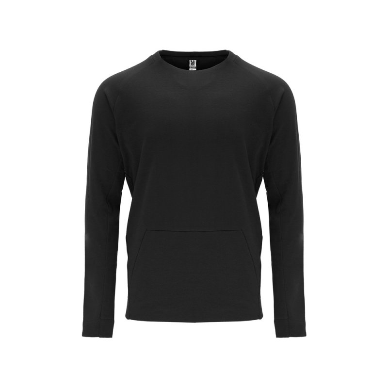 Свитшот с рукавом реглан. Горловина спинки и боковая часть манжет из риба 1х1. Карман кенгуру, диагональные боковые швы с наклонам к центру переда.