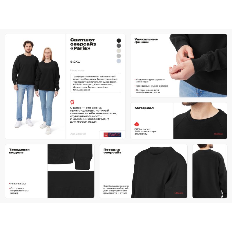- резинка по горловине, рукаву и низу свитшота для комфортной посадки