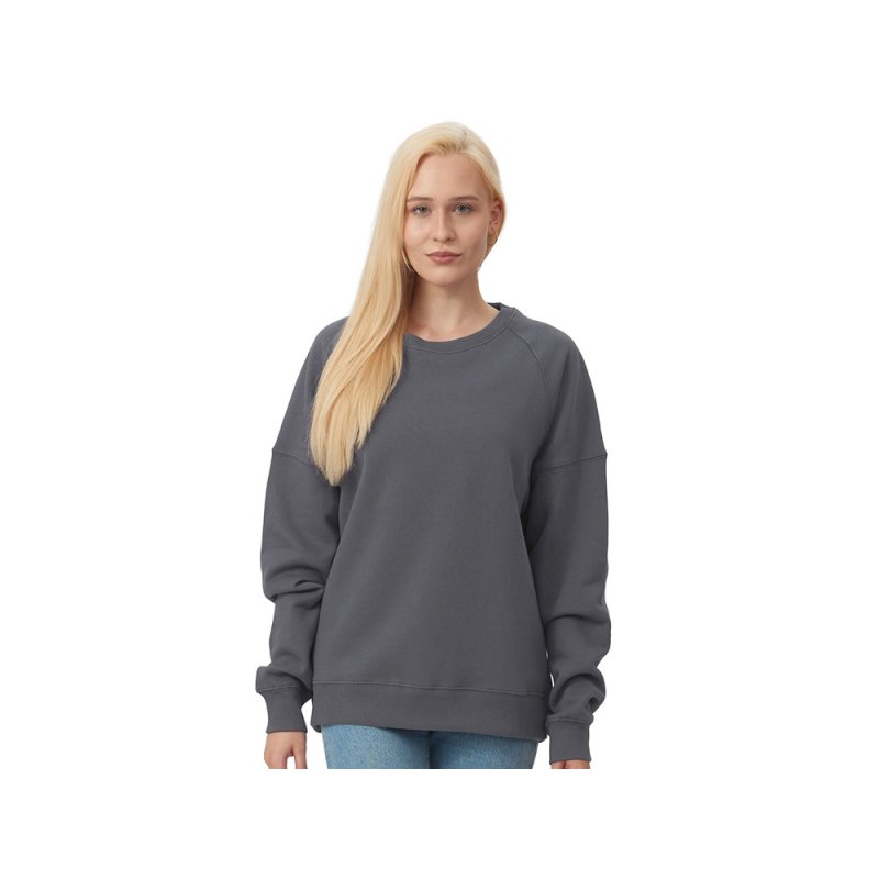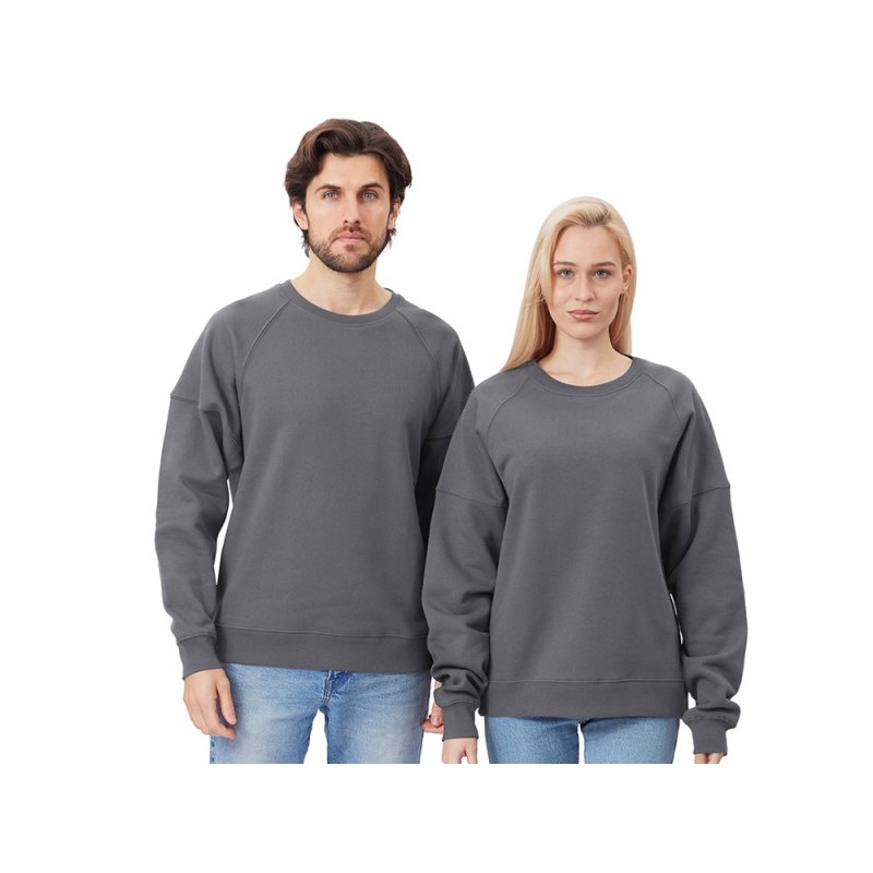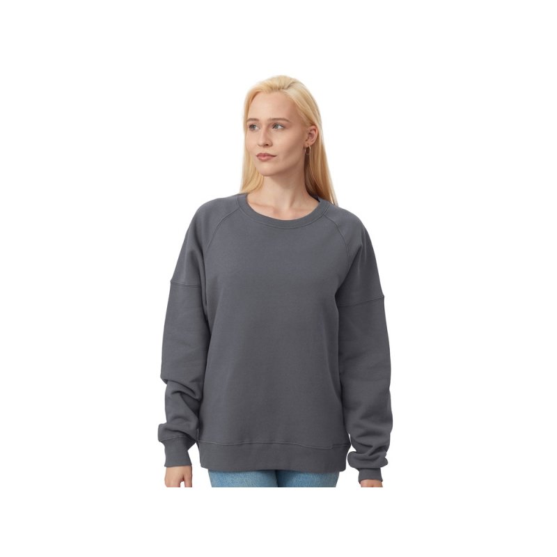 Главная особенность этого свитшота оверсайз — необычный рукав из двух частей: верхней — реглан до середины предплечья — и нижней, которая заканчивается резинкой. Благодаря такому необычному крою свитшот сидит комфортно по фигуре.