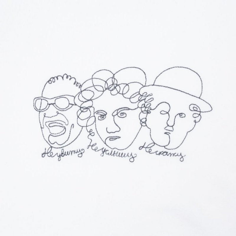 «Ничего не вижу, ничего не слышу, ничего никому не скажу». Аллюзия на культурный феномен представлена вышивкой с портретами трех великих авторов. Музыкант Рей Чарльз был лишен зрения, композитор Людвиг Ван Бетховен — слуха, а актер и режиссер Чарли Чаплин создавал немое кино. Никакие ограничения не могут помешать талантливому человеку доносить свои идеи и создавать прекрасное.Классический кроеный свитшот унисекс. Манжеты, ворот и низ изделия отделаны резинкой. Внутренняя сторона без начеса.