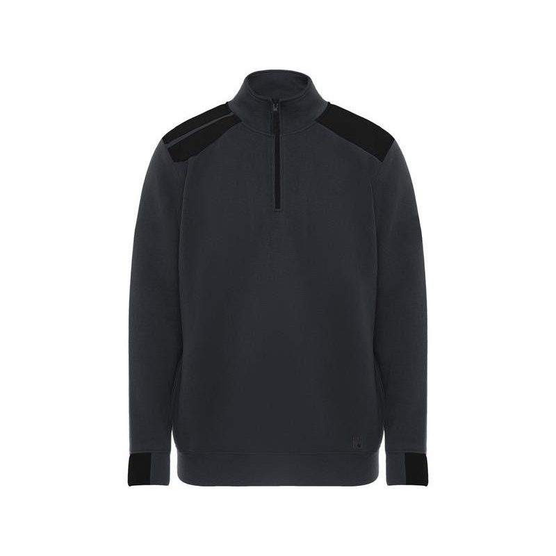 Толстовка с воротом- стойкой на молнии с сочетанием двух цветом. Половина манжет и низ изделия из рибового полотна 1х1. Укрепляющая отстрочка по внутреннему воротнику. Контрастные плечи , детали, молния и манжеты