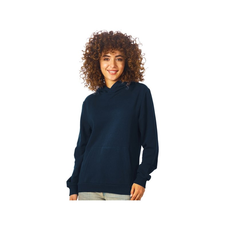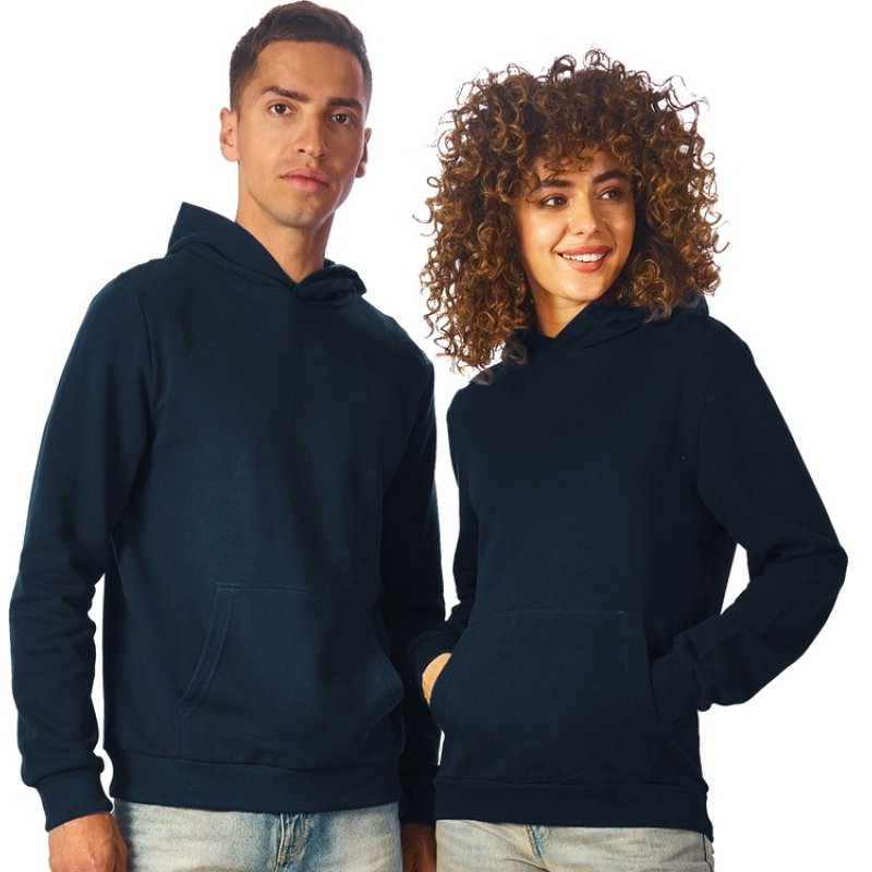 Толстовка с капюшоном (худи) из плотного хлопкового 3х ниточного футера. В капюшоне подкладка в тон, а горловина спинки дополнительно укреплена тесьмой с выделкой елочка. Капюшон без шнурков – ничего не отвлекает от вашего брендирования. Манжеты и низ изделия отделаны рибом 2х2. Глубокий комфортный карман кенгуру на полочке. Полотно из утяжеленного хлопкового футера внутри с петельками без начеса.